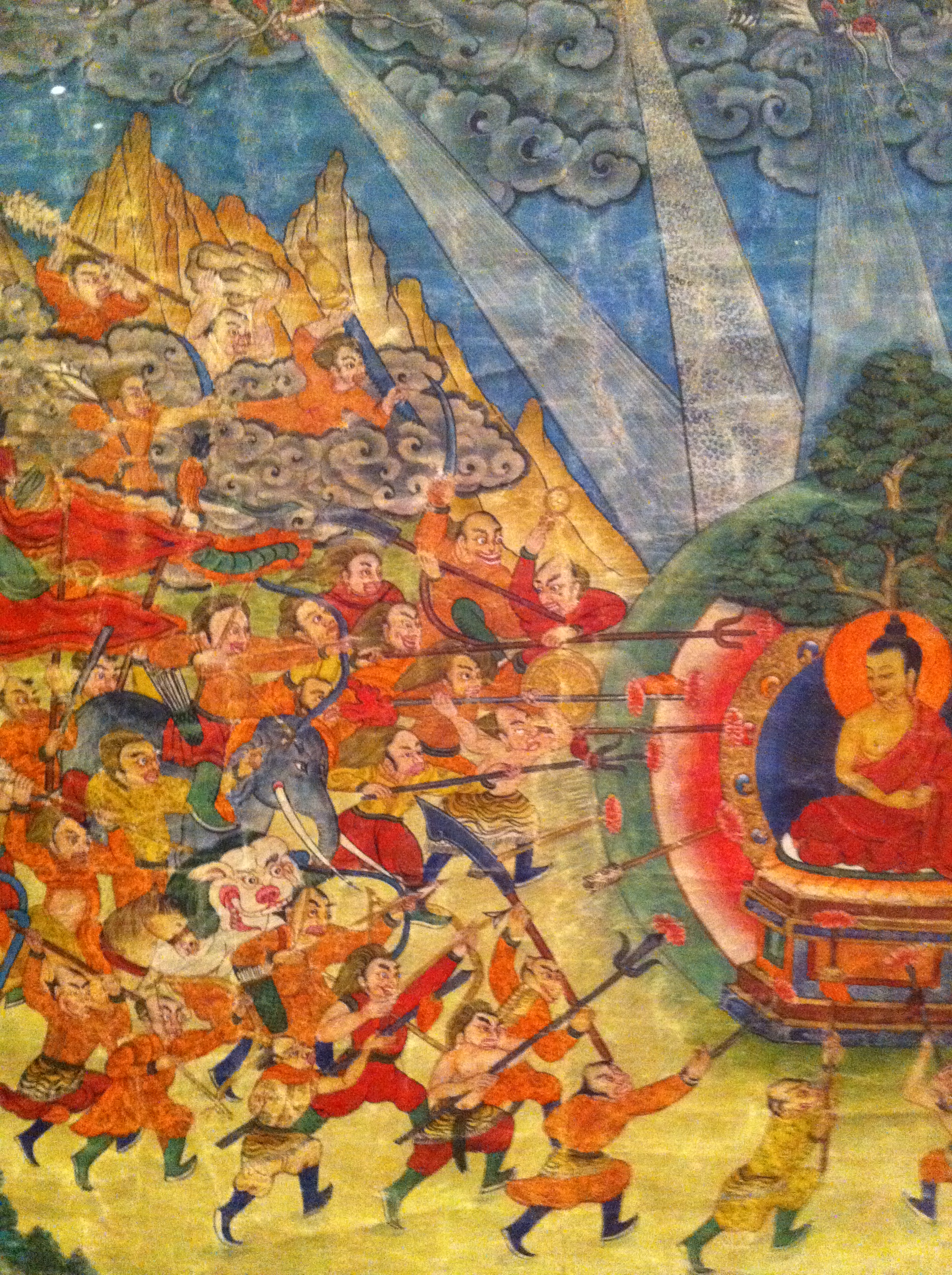 There can be a lot of pain and suffering when we become aware of how we cling to this wanting to “be”. This alone could easily be regarded as ‘going to a place that scares you’ that so much chöd literature seems to refer to. Sometimes this suffering manifests physically, with a visceral painful feeling, a hollowness or sharp sense of discomfort, other times it arises as a sudden busyness in which all of the sudden there is something very important that we find we need to do- something that distracts us from our practice. Sometimes these new things we find ourselves needing to do seem so important and vital that we are seduced by their wonderful meaning and uniqueness. These of course are the arising of demons. They find us wherever we are and rather powerfully unweave some of the fabric of confidence in resting in the view that allows for chöd to be the powerful practice that it is.