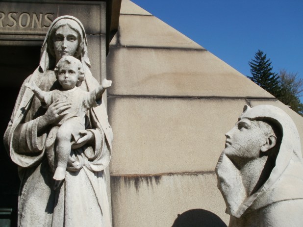 Over the years we have very effectively averted our eyes from death; we love to avoid the topic of death as well as that of illness and old age. Perhaps there is convenience in this as it allows ourselves to feel ever young and invincible. However a visit to Green-Wood (or any cemetery) helps to shake loose the taboo nature that death occupies, effectively reeling it in from the periphery of our experience of daily life. On a recent trip with my son and girlfriend we meandered through the beautiful grounds of Green-Wood observing the memorialized names of those who are no more. The comparatively young age at which many of Green-Wood’s residents passed away- at least a third of the grave we saw that day were those of young children or young women who died in child-birth, is particularly striking. As one would expect to find, there is a wide variety of ages and cultural back grounds represented, further demonstrating with basic simplicity the fact that death does not discriminate.
