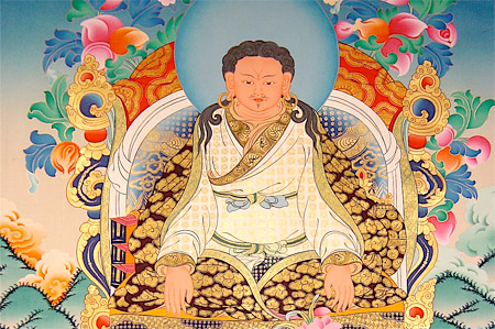 Marpa the indomitable angry Tibetan farmer- stuborn and hard-headed- decided to leave Drogmi Lotsawa to find and experience dharma on his own, for himself. Undergoing a series of journeys through out Nepal and India he eventually found his guru, Naropa. Marpa had to bear the brunt of being Tibetan in 11th century India, not an easy task Tibetans were generally regarded as rough and not that intelligent by their Nepali and Indian contemporaries. Indeed, the mahasiddha Sri Santibhadra (aka Kukkuripa) to whom Marpa was directed to initially receive the transmission of the Mahamaya Tantra asked why he should give the empowerment of the Mahamaya Tantra and subsequent explanations to a “stupid flat nosed Tibetan?” That must have really pushed the buttons of this precocious, driven seeker who was known for having a short fuse! The relationship between Naro and Marpa, like that of Tilopa and Naropa, was also intimate and close- Marpa spent years actualizing the paths that were offered to him from his primary guru, Naropa. Marpa also maintained close relationships with the mahasiddhas Maitripa, Kukkuripa, as well as Saraha (in the dream-state). Marpa brought the instructions of these great masters back to Tibet and firmly placed the victory banner of the kagyu ear-whispered lineage upon the Tibetan Plateau.