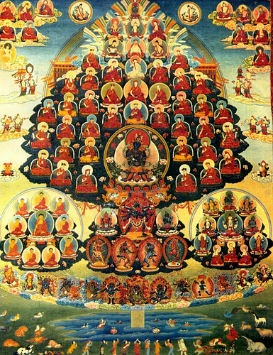 In the most classical aspect of this practice, we make our prostrations to the wonderful field of refuge: our lineage forefathers and foremothers.  In this way we seek to enter and become part of a lineage. We join our lineage through repeatedly receiving the blessings of the lineage; in fact, we are instructed to help lead all sentient beings in the meritorious activity of supplicating and joining our specific lineage with us.  Why do we do this?  It is said that all beings have at one point in time been our mothers, having cared for us with selfless beauty and having made endless sacrifices, protected us, nurtured us, and also supported and enriched us.  Through time immemorial, through the various combinations and permutations of the manifestations of karma, all beings have been, at any given point in time, our mothers.  Indeed every person we meet has done this for us.  Every animal.  Every friend.  Every enemy.  Every being, seen and unseen, has done this for us- and in this way we are all inextricably linked.  What better way to repay these countless mother-beings than to act as a raft to lead them to the banks of spiritual realization?